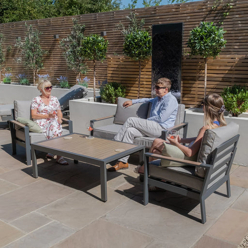 View full detailsMaze - Vancouver Large Alumunium Corner Dining Set with Rectangular Coffee Table & Armchair - Dove Grey