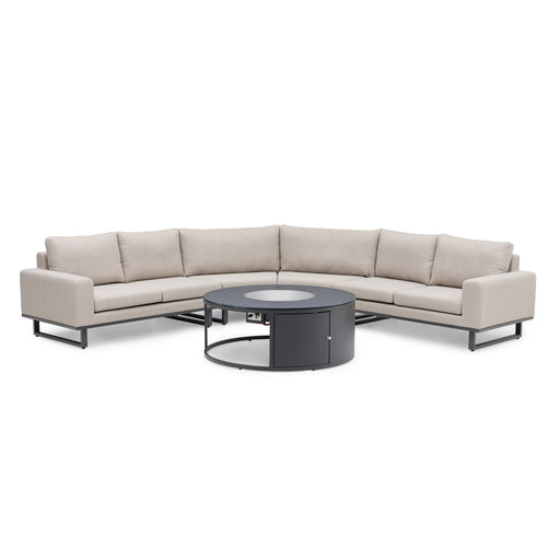 View full detailsMaze - Outdoor Fabric Ethos Grande Corner Sofa Set with Round Fire Pit Table - Oatmeal