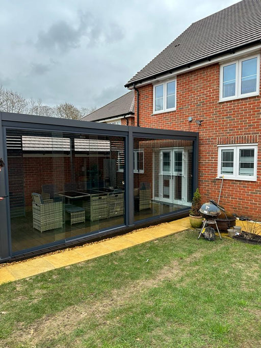 Nova - Titan Aluminium Pergola 4m x 3m Rectangular with Glass Sliding Doors - Grey New Model FREE DELIVERY Family Run Business 5 yr Warrant...